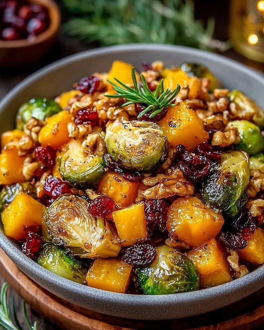 ⭐ Roasted Brussels Sprouts & Butternut Squash with Maple Walnuts