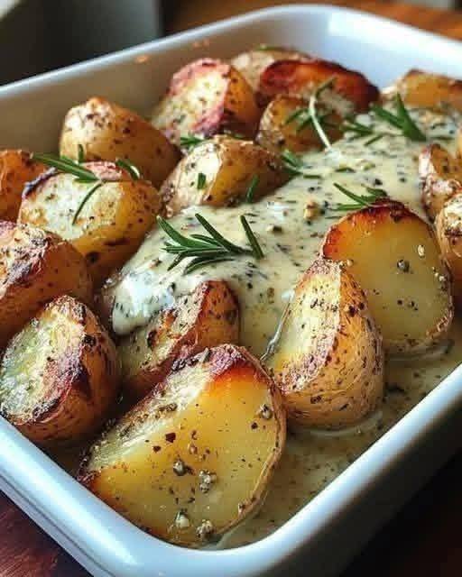 Baby potatoes, Yukon Gold, or red potatoes work best because they stay creamy inside and crisp outside.