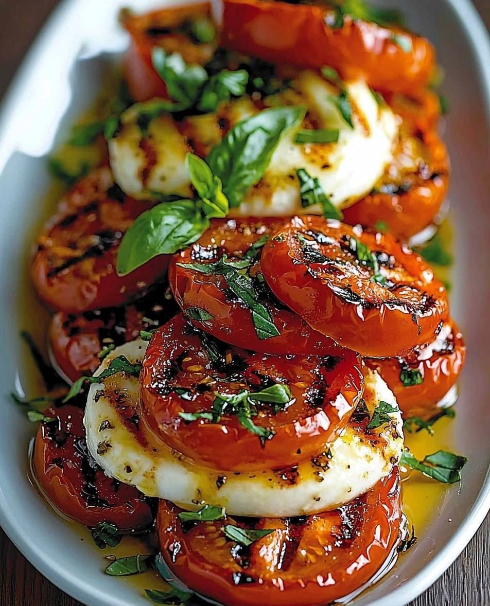The roasting process intensifies the tomatoes’ natural sweetness, making them perfect when paired with the creamy mozzarella and fresh basil. The balsamic vinegar adds depth, and the olive oil provides richness, bringing everything together in a satisfying way. This simple yet flavorful twist on the classic Caprese salad will surely become a favorite!