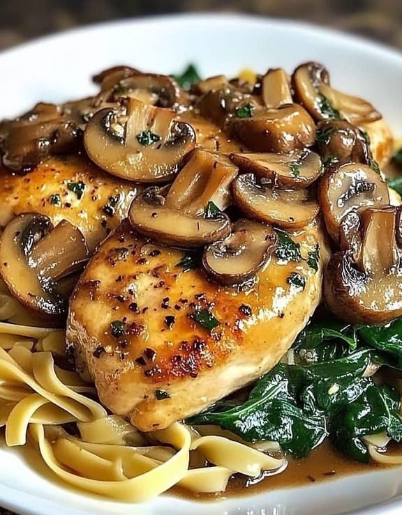 Savory Garlic Mushroom Chicken with Spinach