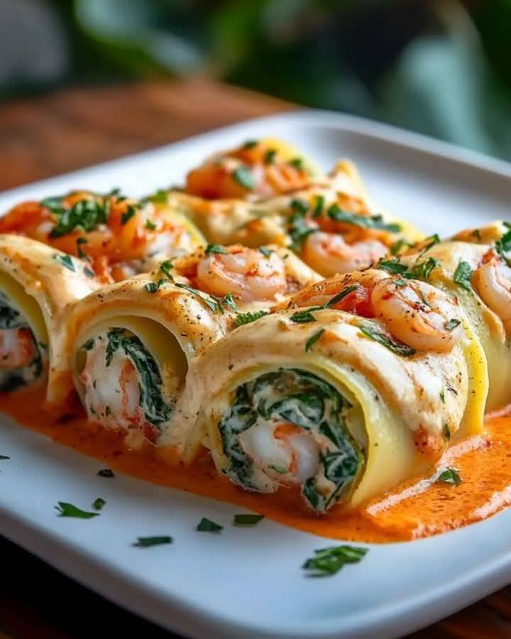 🍝 Shrimp and Spinach Stuffed Pasta Rolls