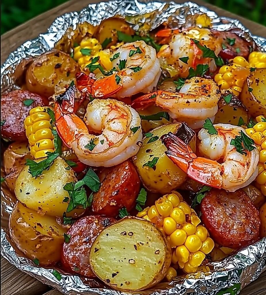 Shrimp, Corn, Potatoes & Smoked Sausage Foil Packs