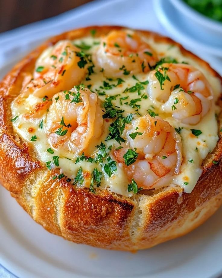 This dish is a fun twist on the classic cheese fondue, with the bread bowl acting as both the serving vessel and a delicious part of the meal. The creamy, cheesy sauce pairs perfectly with tender shrimp, and the bread serves as a wonderful vehicle for scooping up the rich sauce. It’s indulgent, comforting, and perfect for impressing guests or satisfying your own cravings.