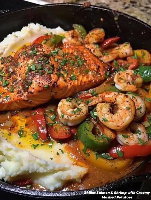 🐟 Skillet Salmon & Shrimp with Creamy Mashed Potatoes