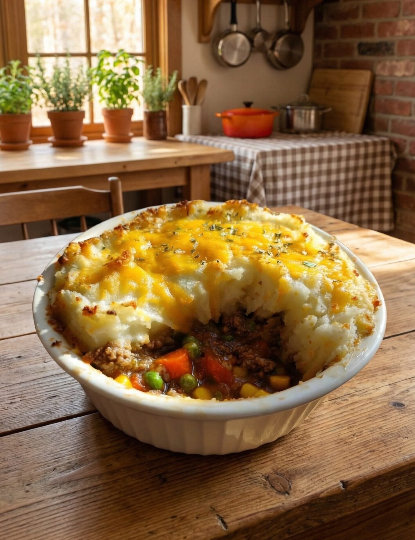 A rich meat-and-vegetable filling simmered slowly, topped with creamy mashed potatoes for a comforting one-pot meal.