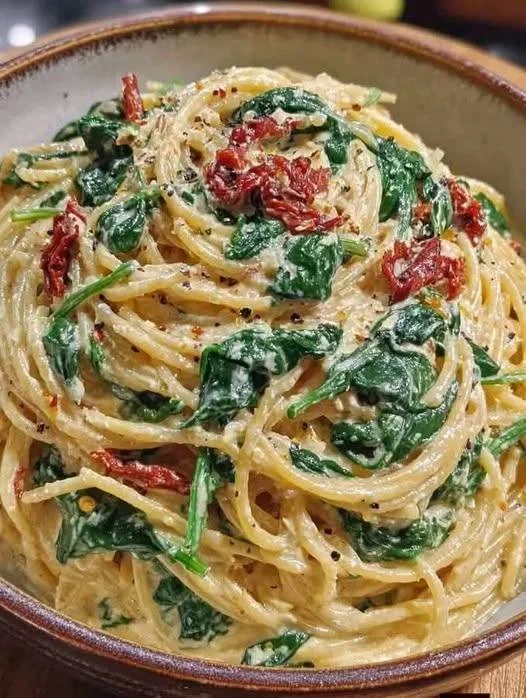 • Stir in sun-dried tomatoes and cook for 1–2 minutes.