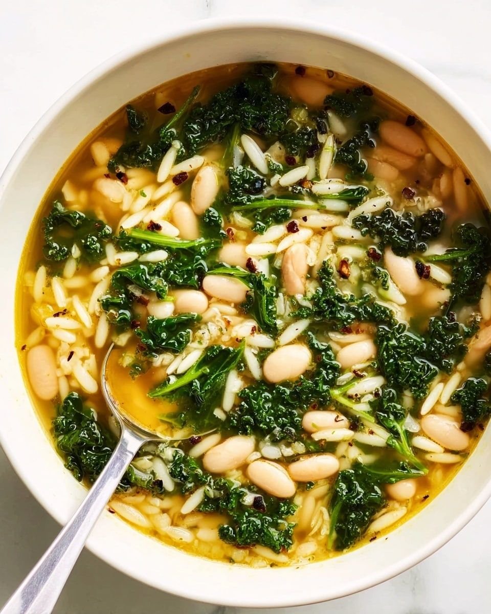 🍲 Spicy Kale, White Bean & Orzo Soup