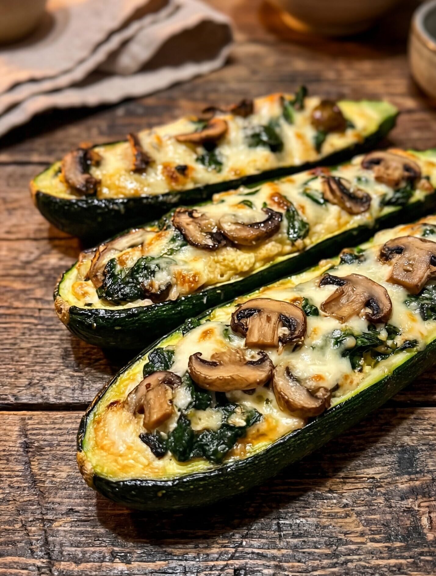 🥒 Spinach, Mushroom & Ricotta Stuffed Zucchini Boats