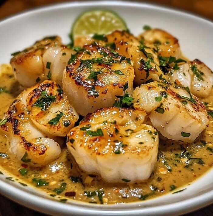 • Spoon the creamy coconut lime sauce over the fish fillets.