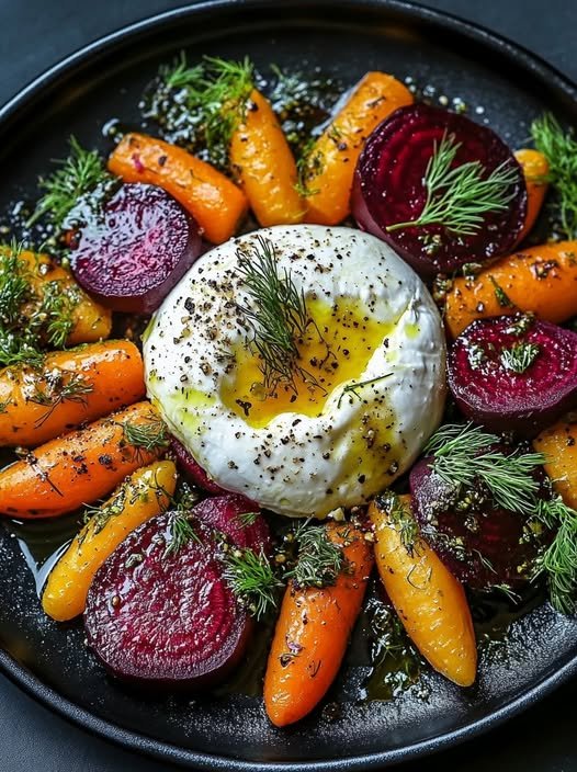 Vibrant Roasted Beets & Carrots with Creamy Burrata Salad
