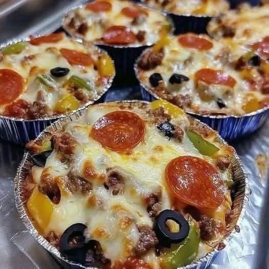 Using oven-safe ramekins or aluminum cups, start layering:- A few spoonfuls of pizza sauce